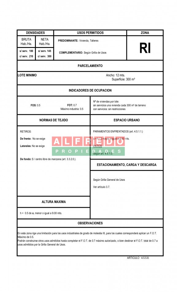 Superficie aprox: 324 m². (8.03 mts. sobre Los Criollos - 4.24 sobre ochava - 26.81 sobre Ruy Diaz)